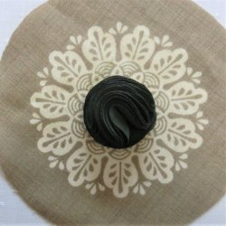 ここほれわんわんオリジナルの、シックな茶色のピケの生地に、立体の可愛いフリフリ花芯が付いたお花が咲くポーチです。全体の形は、2枚目の写真をご覧ください。