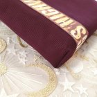 ここほれわんわんオリジナルの紫のピケ生地を土台に使いました。深い紫で、落ち着いたイメージ。細畝のストライプがスッキリとした出来上がりです。