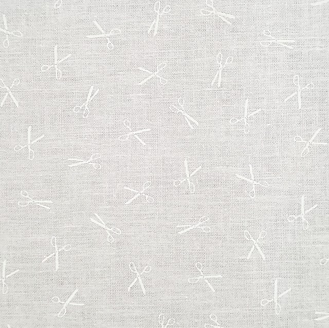 キルトに欠かせない「白生地」です。キルターなら気になっちゃう、小さな「ハサミ」の柄が、地模様で入っている、可愛い生地です。