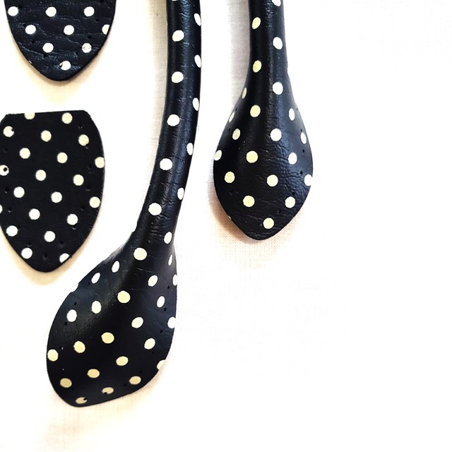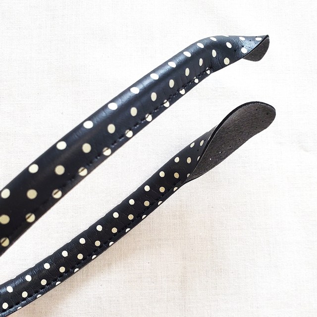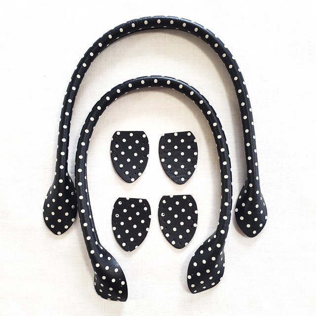 オーソドックスな2本1組の持ち手です。黒字に白のドットが可愛い持ち手です。