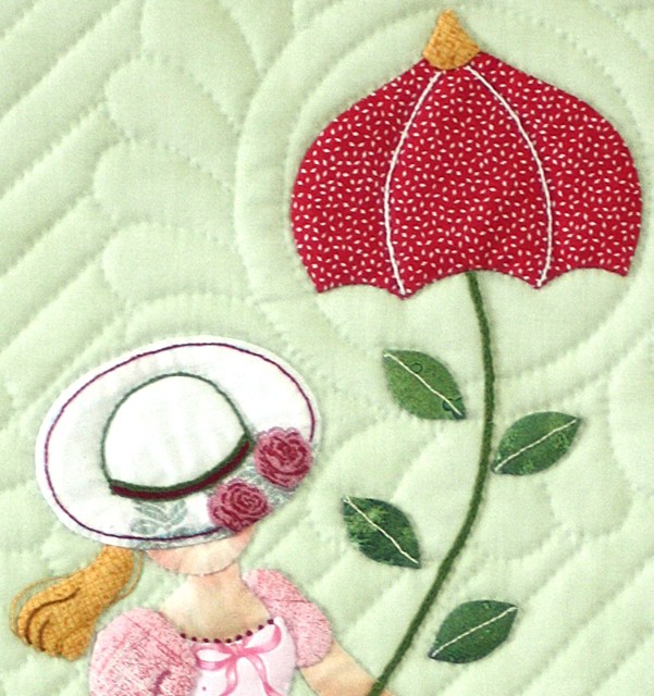 帽子は赤いバラのミシン刺繍生地を豪華に使いました。