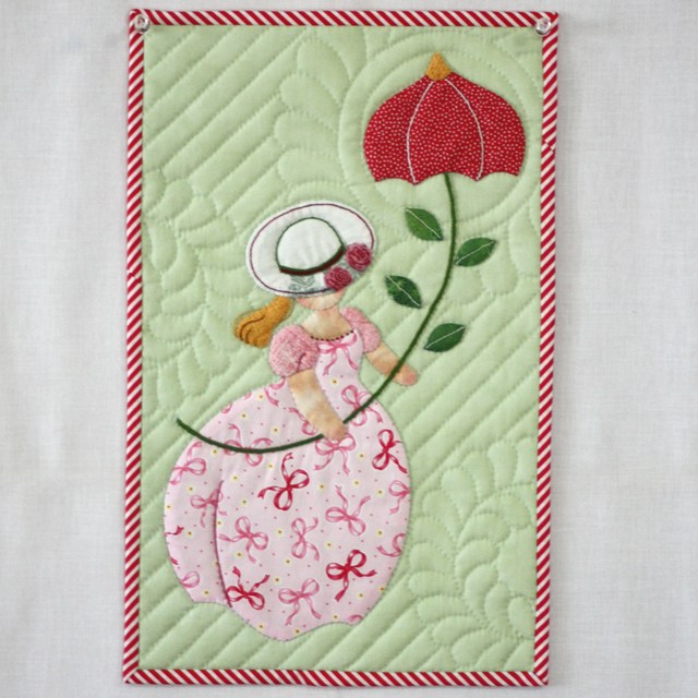お花のようなアンブレラをさしたスーちゃんが可愛い、ミニタペストリーです。