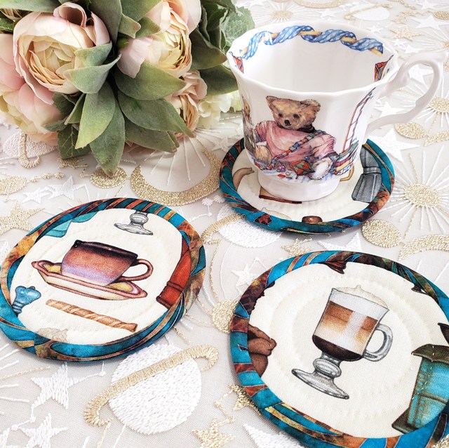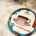キット用サンプルだった商品です。オシャレなコーヒーセットの柄のコースターで、お茶の時間が楽しくなります。