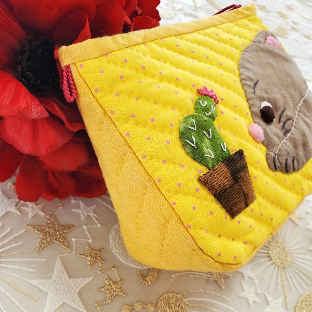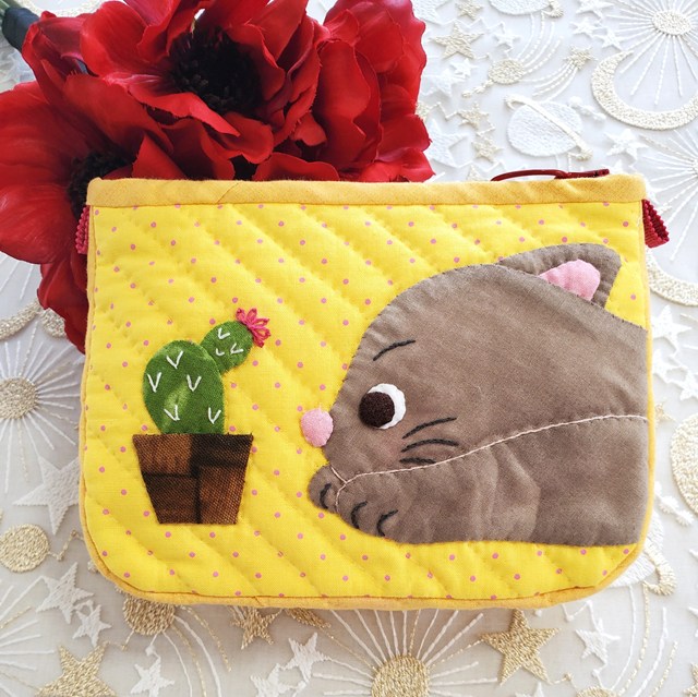 キット用サンプルだった商品です。「さわっちゃダメよ!」とママに言われたけれど、触ってみたいにゃんこ。わんわんらしい、キュートなデザインのポーチです。