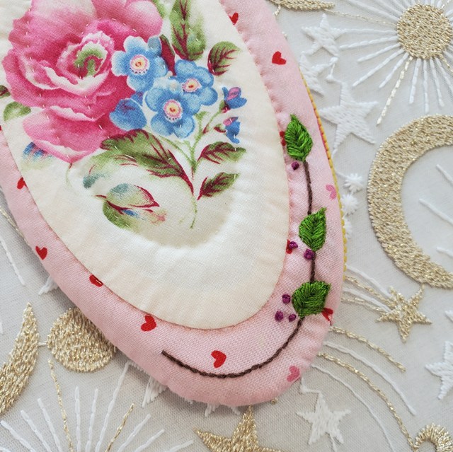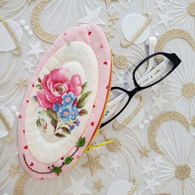 キット用サンプルだった商品です。豪華なバラの柄を利用した優雅なポーチです。