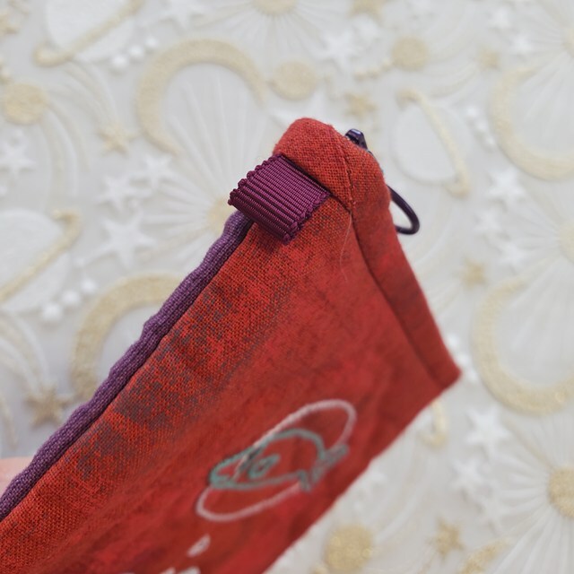 ファスナーは「ブルー&紫」のコンビカラー(16cm)を使いました。引手も大きく、沢山開きます。中身の出し入れが楽にできます。
