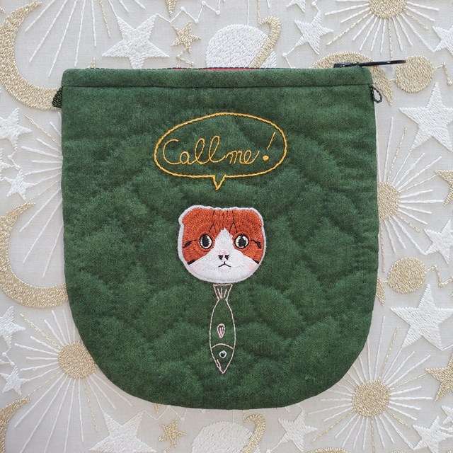 ホーム | 完成品「WANKORO」 > サンプル見本(完成品)キット見本・ワッペンにゃんこのポーチ(魚ネクタイ)