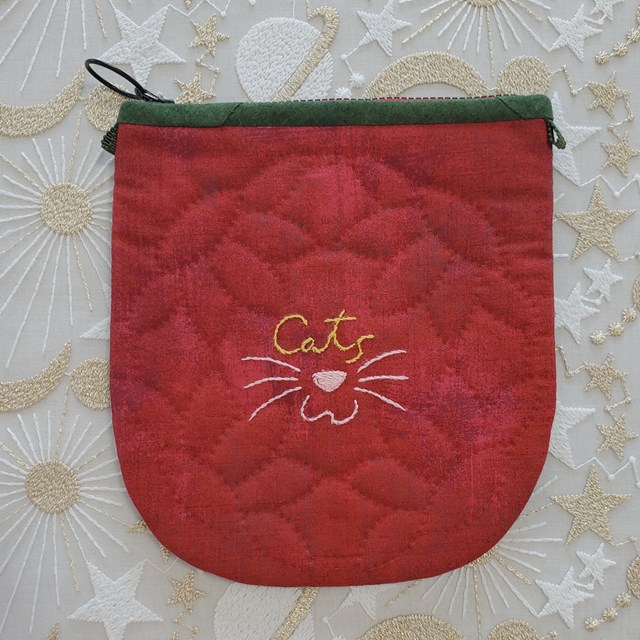 キット用サンプルだった商品です。キュートなネコのワッペンを利用したポーチです。
