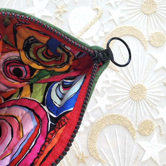 ファスナーは「レッド&ブラック」のコンビカラー(16cm)を使いました。引手も大きく、沢山開きます。中身の出し入れが楽にできます。