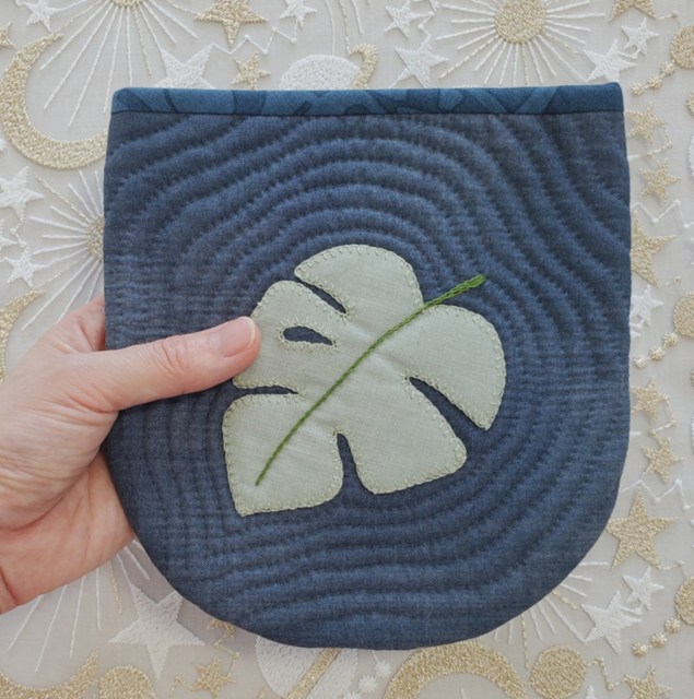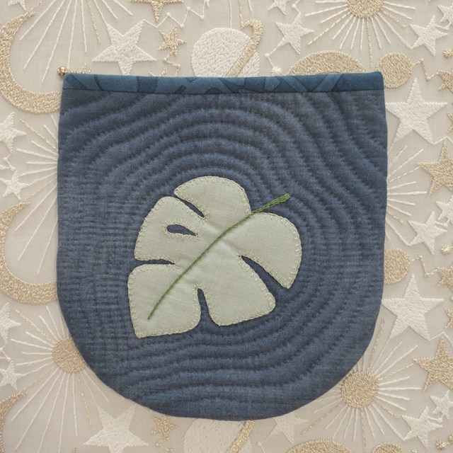 ホーム | 完成品「WANKORO」 > サンプル見本(完成品)キット見本・モンステラのポーチ(ネイビー)