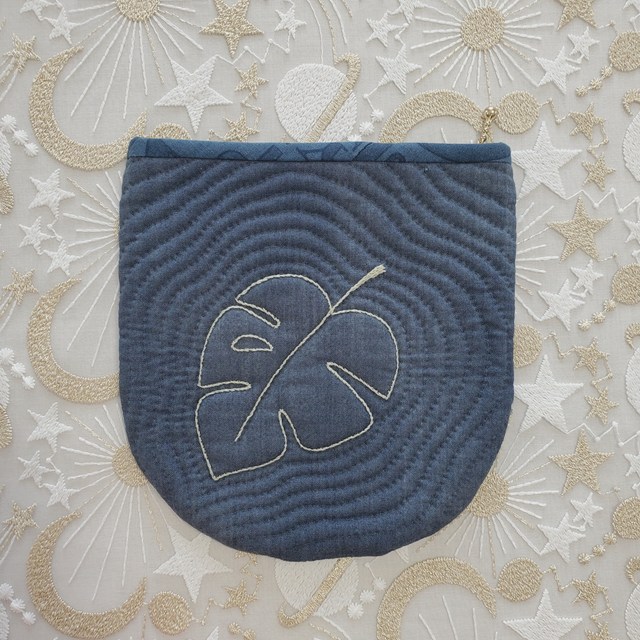 キット見本・モンステラのポーチ(ネイビー)