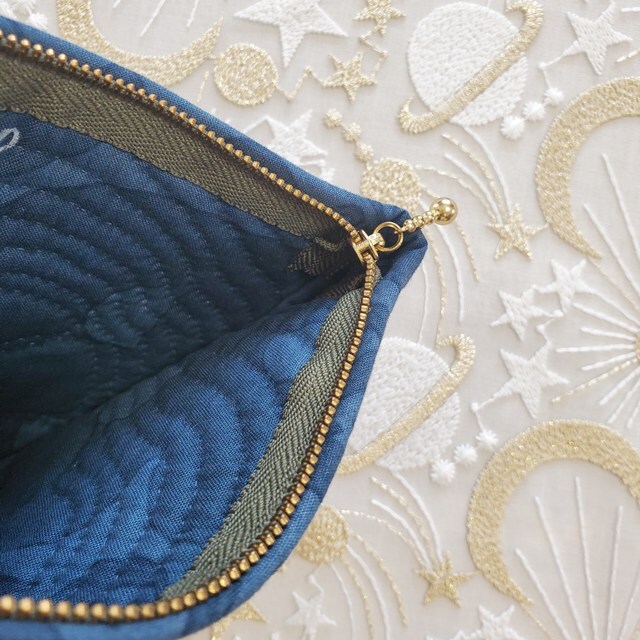 ファスナーは、モスグリーンの玉付きファスナー16cm)を使いました。沢山開きます。中身の出し入れが楽にできます。
